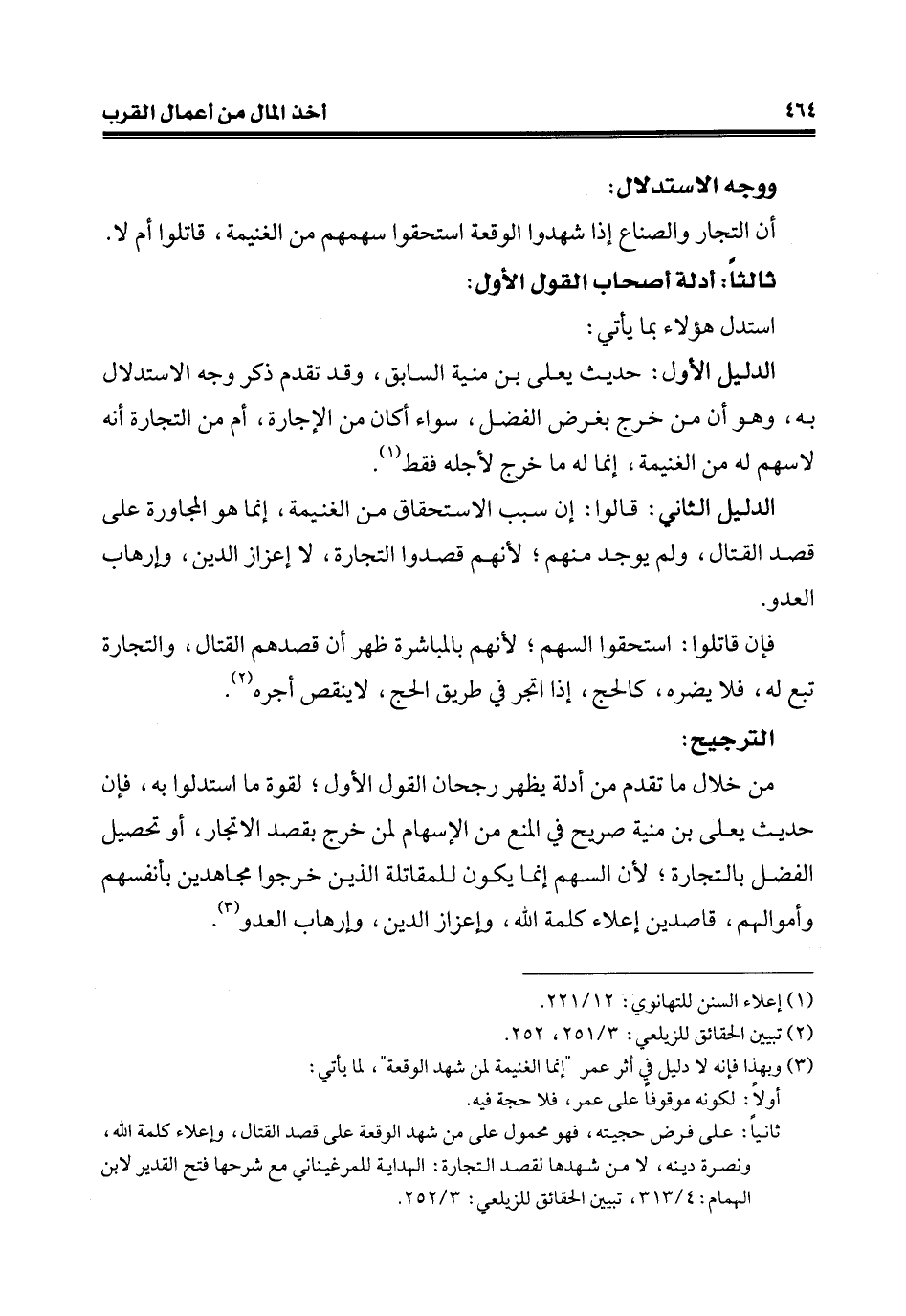 ثانيًا: على فرض حجيته، فهو محمول على من شهد الوقعة على قصد القتال، وإعلاء كلمة الله، ونصرة دينه، لا من شهدها لقصد التجارة: الهداية للمرغيناني مع شرحها فتح القدير لابن الهمام: 4/ 313، تببين الحقائق للزيلعي: 3/ 252.