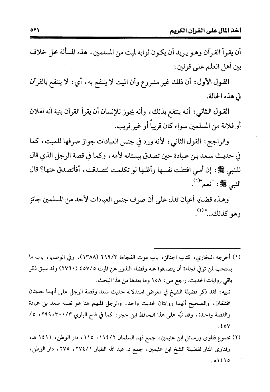 (¬2) مجموع فتاوى ورسائل ابن عثيمين، جمع فهد السلمان 2/ 114، 115، دار الوطن، 1411 هـ، وفتاوى المنار لفضيلة الشخ ابن عثيمين، جمع د. عبد الله الطيار 1/ 274، 275، دار الوطن، 1415 هـ.