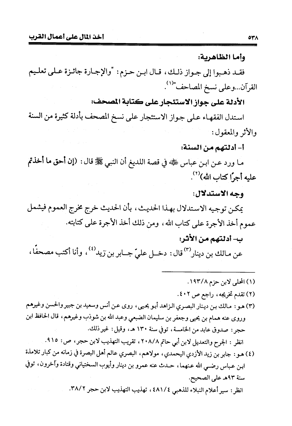 فقد ذهبوا إلى جواز ذلك، قال ابن حزم: "والإجارة جائزة على تعليم القرآن ... وعلى نسخ المصاحف" (¬1).