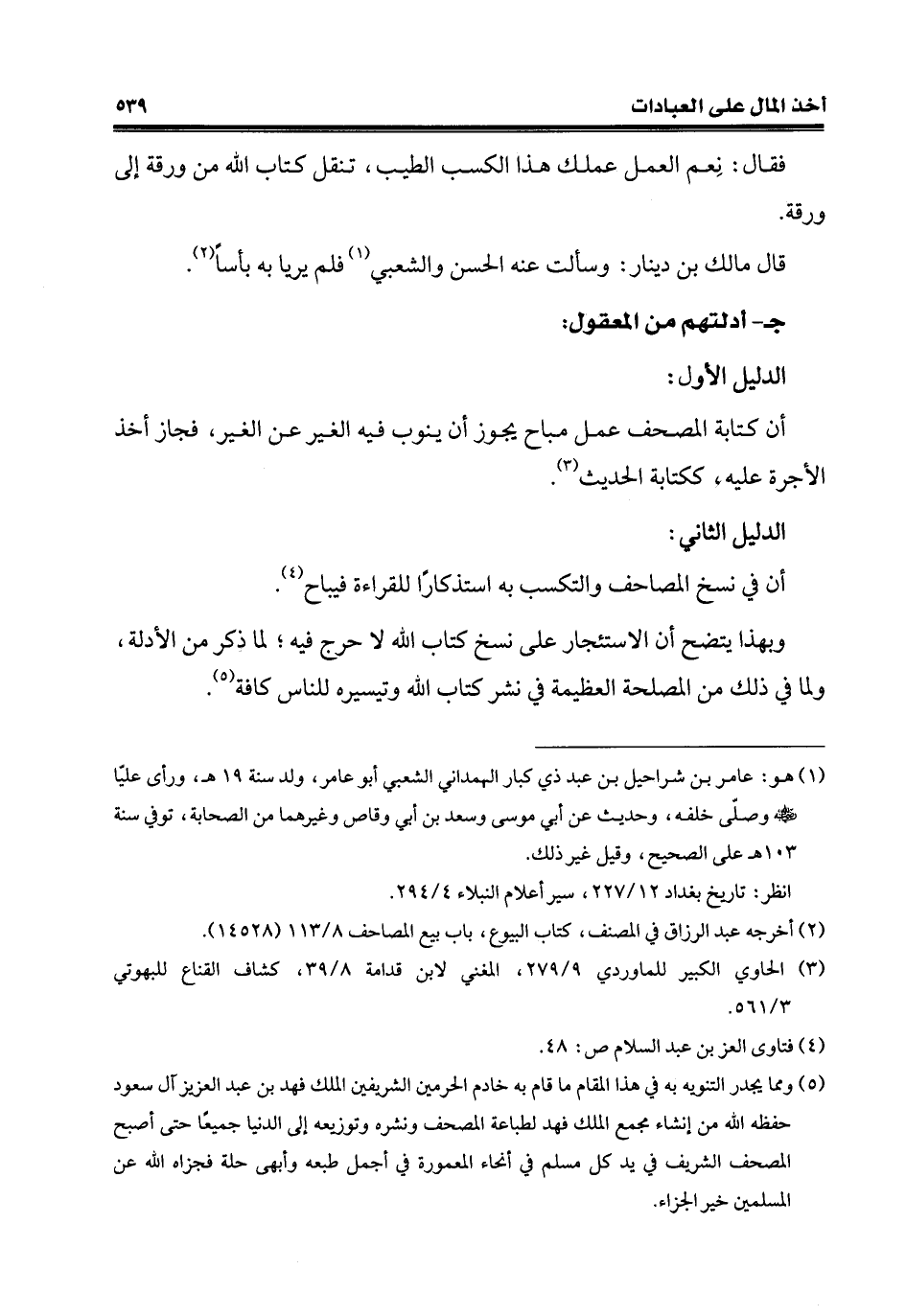 وبهذا يتضح أن الاستئجار على نسخ كتاب الله لا حرج فيه؛ لما ذكر من الأدلة، ولما في ذلك من المصلحة العظيمة في نشر كتاب الله وتيسيره للناس كافة (¬5).