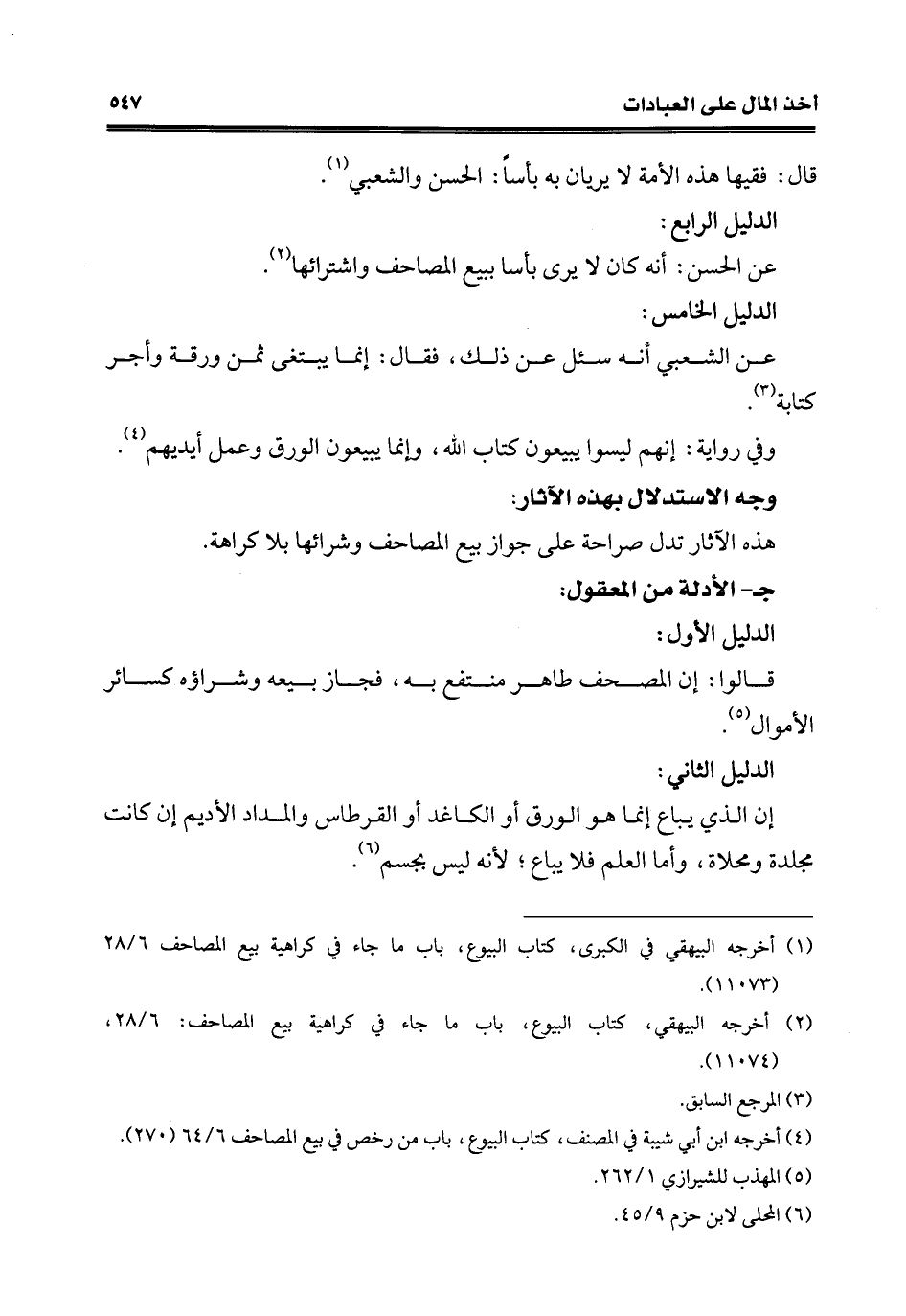 (¬4) أخرجه ابن أبي شيبة في المصنِّف، كتاب البيوع، باب من رخص في بيع المصاحف 6/ 64 (270).