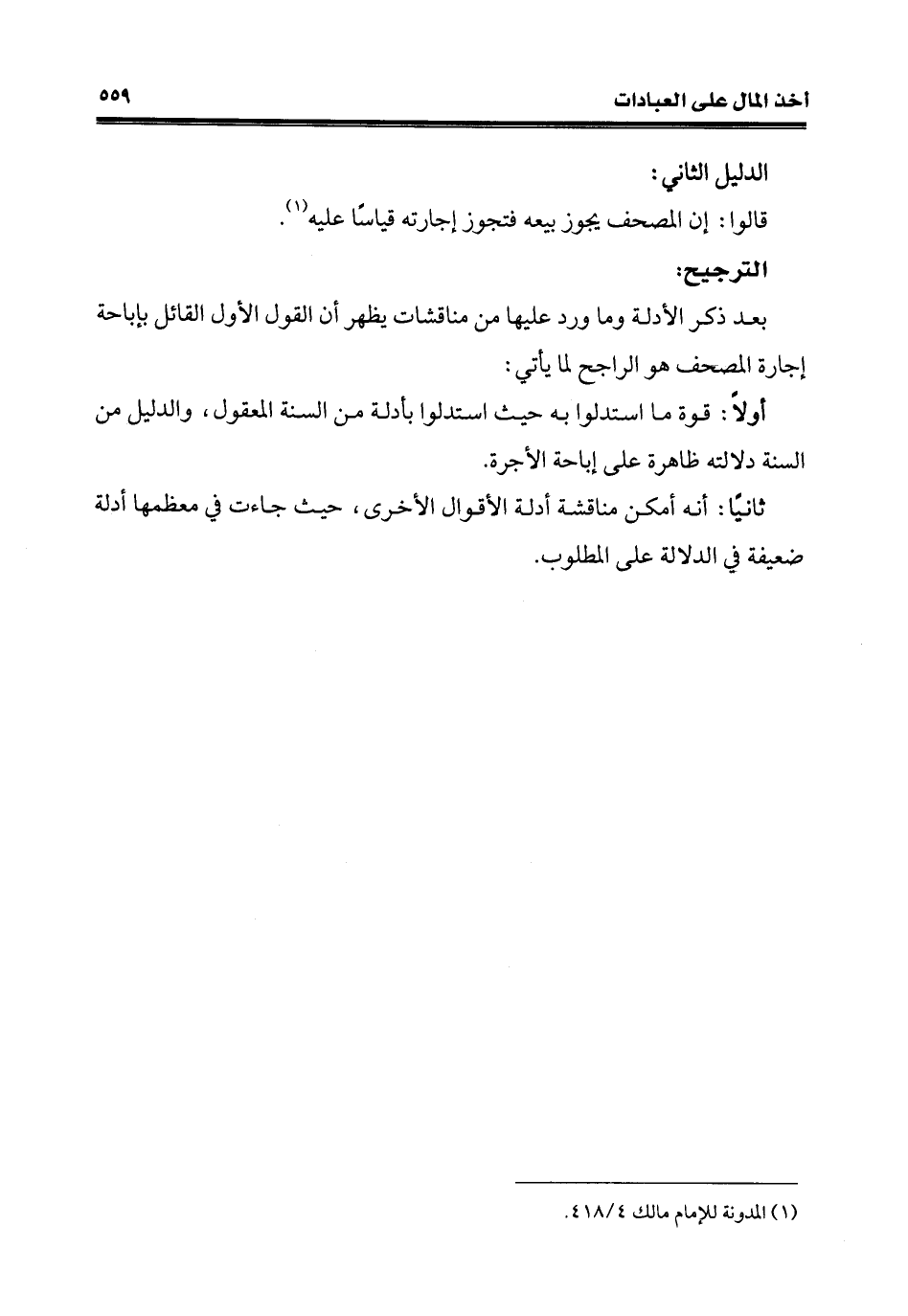 بعد ذكر الأدلة وما ورد عليها من مناقشات يظهر أن القول الأوّل القائل بإباحة إجارة المصحف هو الراجح لما يأتي: