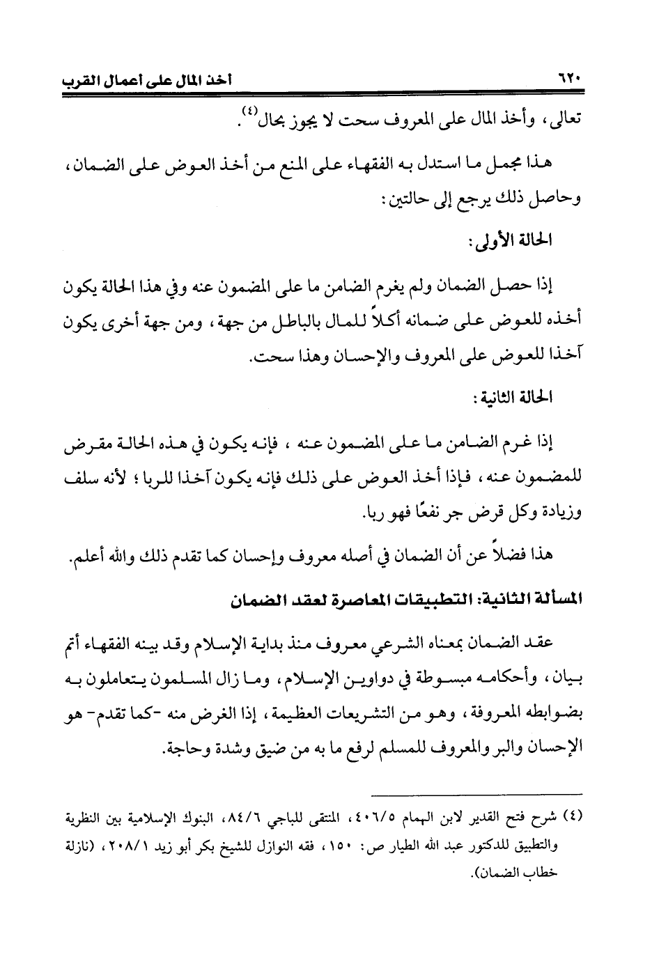 (¬4) شرح فتح القدير لابن الهمام 5/ 406، المنتقى للباجي 6/ 84، البنوك الإِسلامية بين النظرية والتطبيق للدكتور عبد الله الطيار ص: 150، فقه النوازل للشيخ بكر أبو زيد 1/ 208، (نازلة خطاب الضمان).