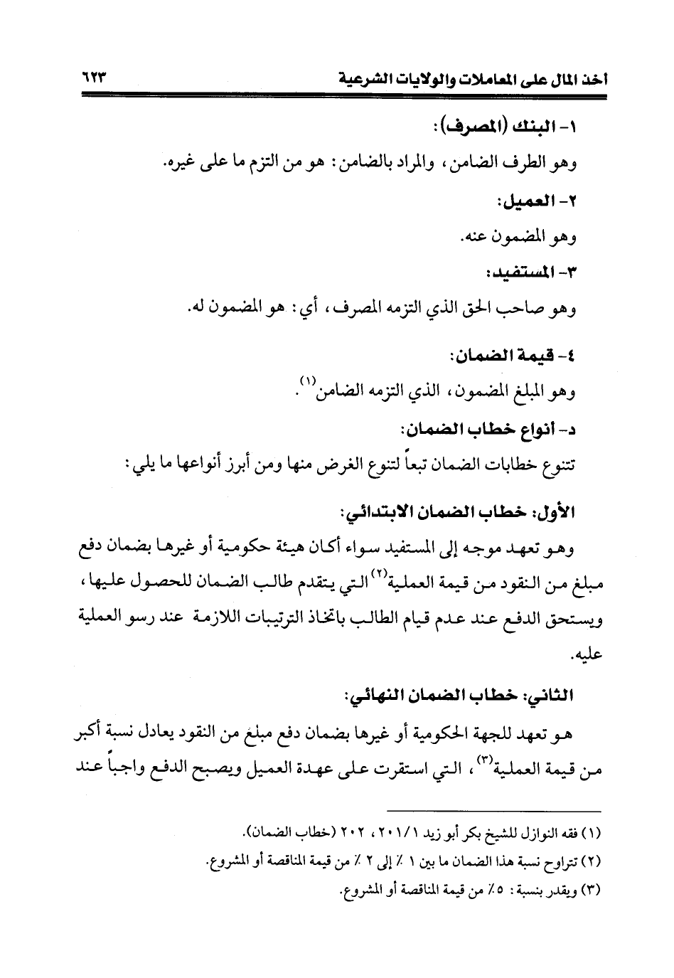 (¬1) فقه النوازل للشيخ بكر أبو زيد 1/ 201، 202 (خطاب الضمان).