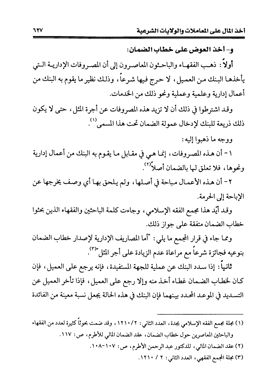 (¬1) مجلة مجمع الفقه الإِسلامي بجدة، العدد الثّاني: 2/ 1210، وقد ضمت بحوثًا كثيرة لعدد من الفقهاء والباحثين المعاصرين حول خطاب الضمان، عقد الضمان المالي للأطرم، ص: 117.