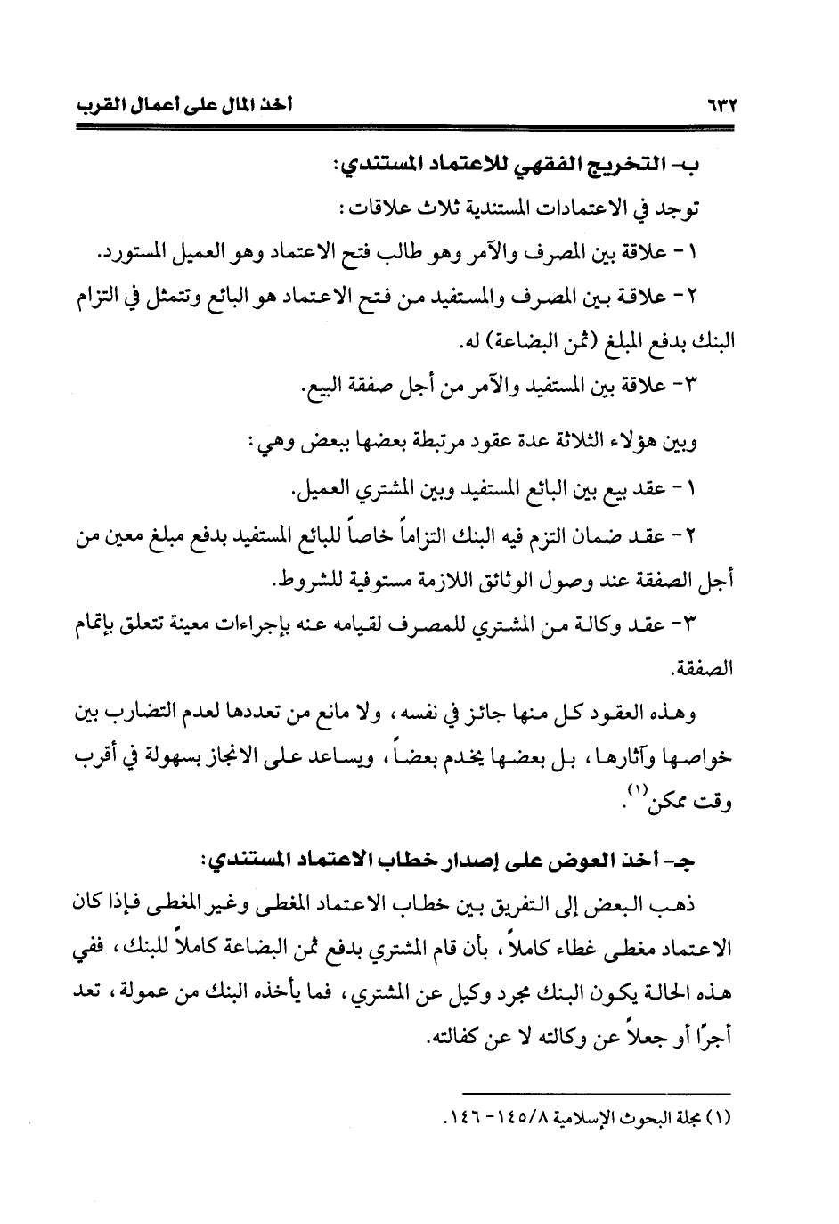 جـ - أخذ العوض على إصدار خطاب الاعتماد المستندي:
