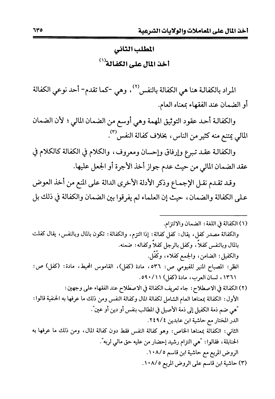 المطلب الثّاني أخذ المال على الكفالة (¬1)