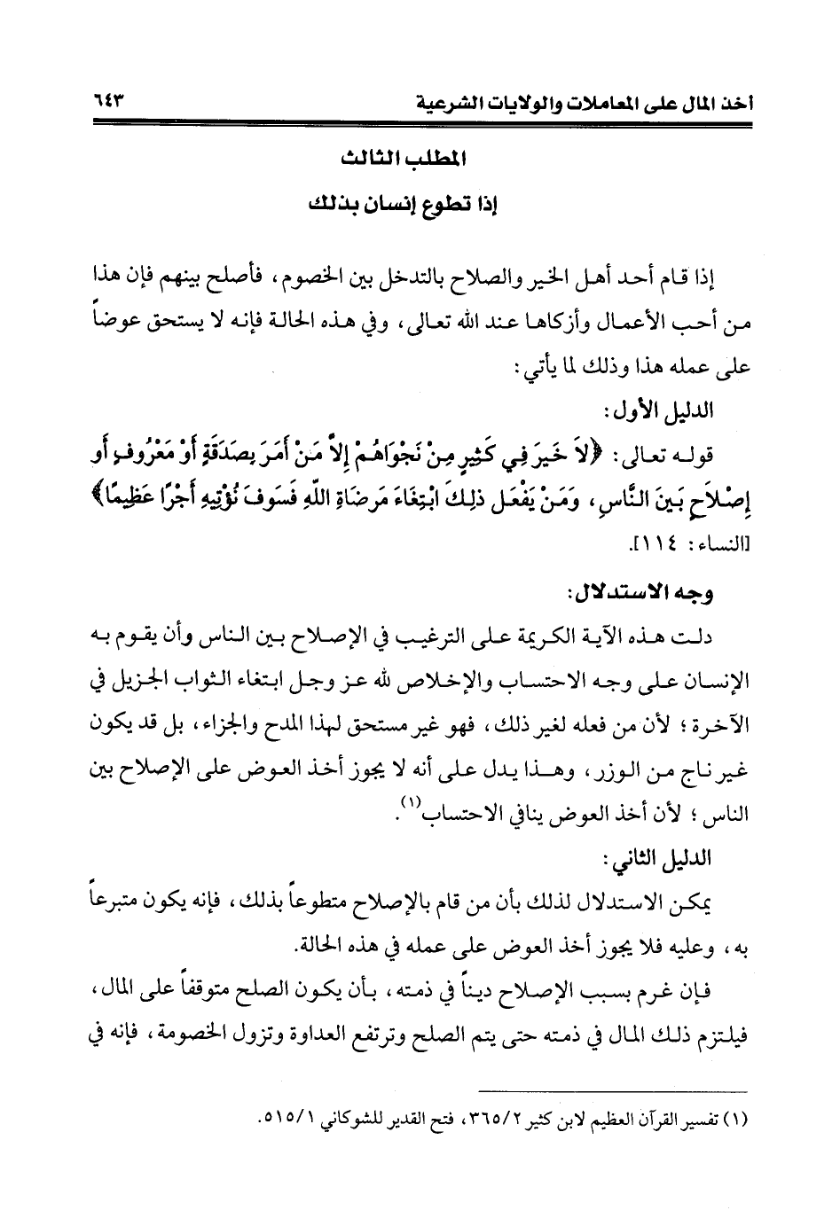 إذا قام أحد أهل الخير والصلاح بالتدخل بين الخصوم، فأصلح بينهم فإن هذا من أحب الأعمال وأزكاها عند الله تعالى، وفي هذه الحالة فإنّه لا يستحق عوضًا على عمله هذا وذلك لما يأتي: