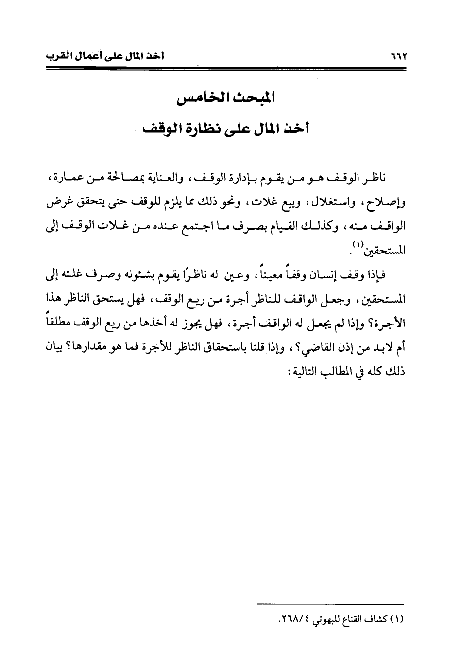المبحث الخامس أخذ المال على نظارة الوقف