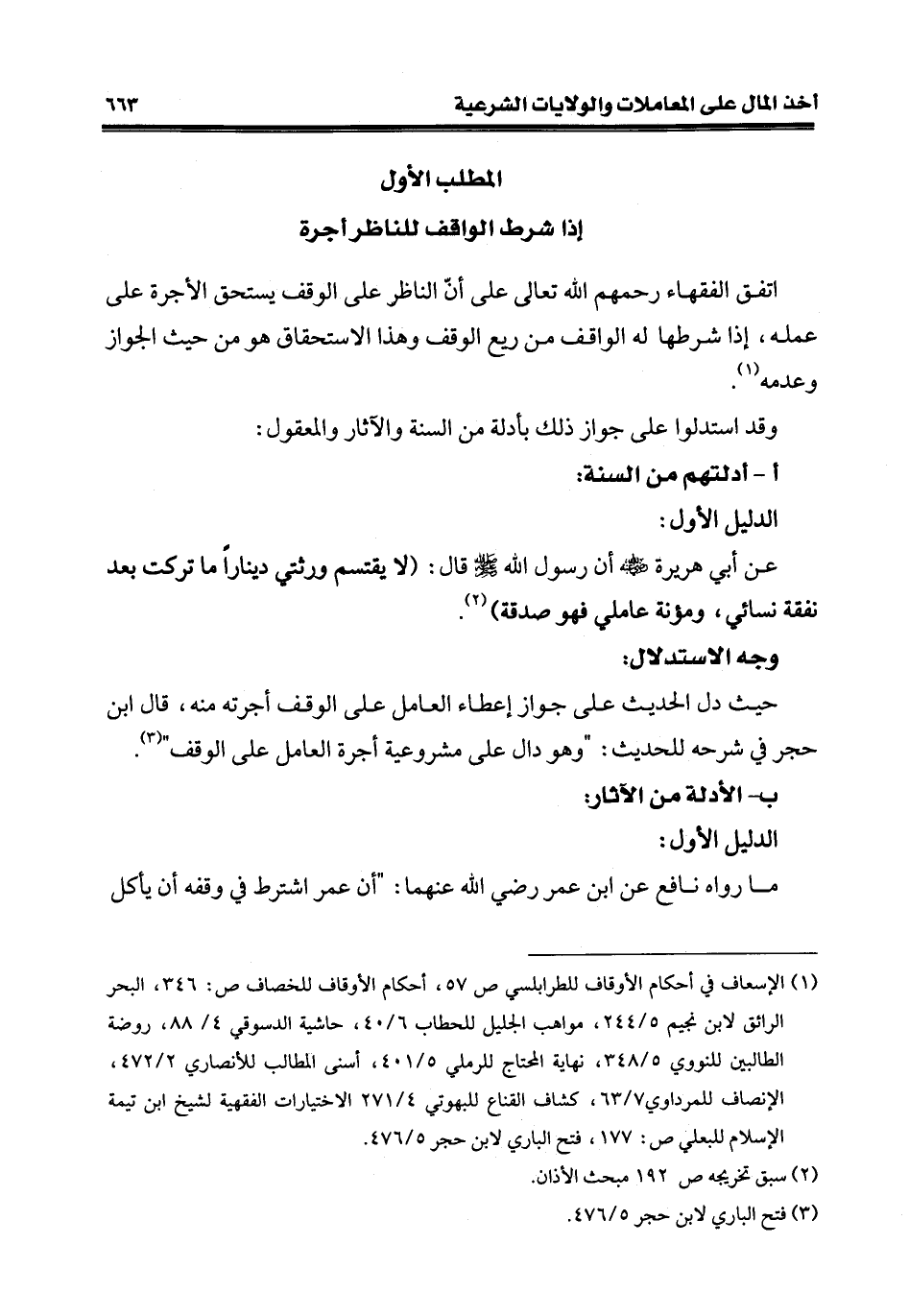 (¬1) الإسعاف في أحكام الأوقاف للطرابلسي ص 57، أحكام الأوقاف للخصاف ص: 346، البحر الرائق لابن نجيم 5/ 244، مواهب الجليل للحطاب 6/ 40، حاشية الدسوقي 4/ 88، روضة الطالبين للنووي 5/ 348، نهاية المحتاج للرملي 5/ 401، أسنى المطالب للأنصاري 2/ 472، الإنصاف للمرداوي 7/ 63، كشاف القناع للبهوتي 4/ 271 الاختيارات الفقهية لشيخ ابن تيمة الإسلام للبعلي ص: 177، فتح الباري لابن حجر 5/ 476.