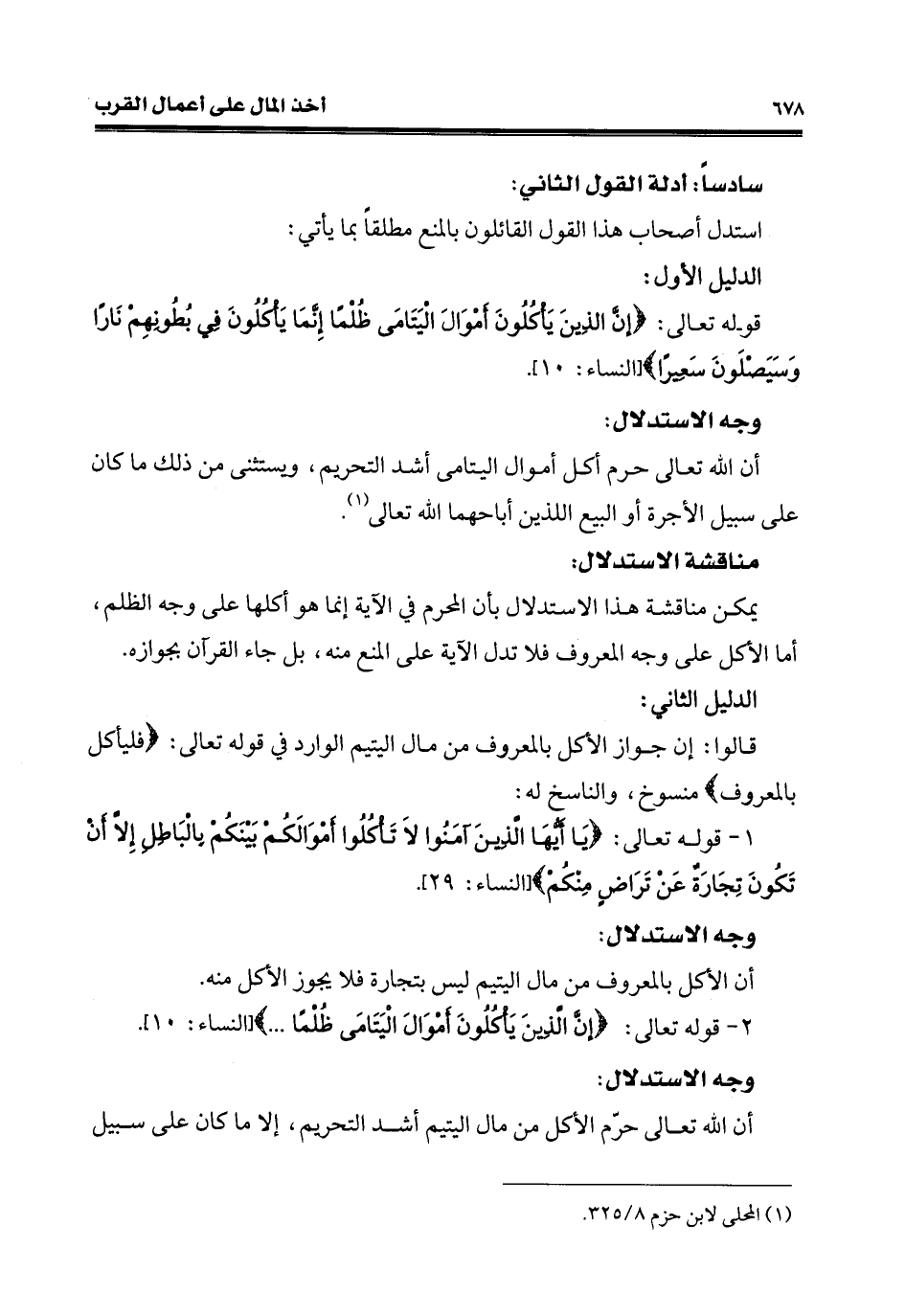 يمكن مناقشة هذا الاستدلال بأن المحرم في الآية إنّما هو أكلها على وجه الظلم، أمّا الأكل على وجه المعروف فلا تدل الآية على المنع منه، بل جاء القرآن بجوازه.
