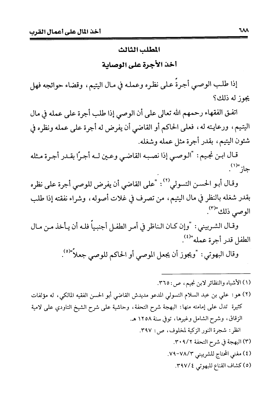 المطلب الثّالث أخذ الأجرة على الوصاية