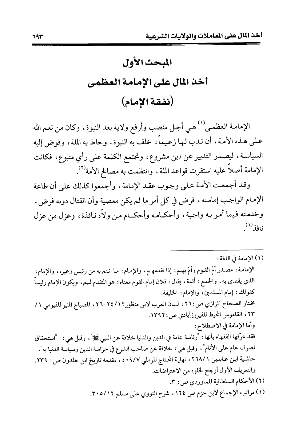 المبحث الأوّل أخذ المال على الإمامة العظمى (نفقة الإمام)