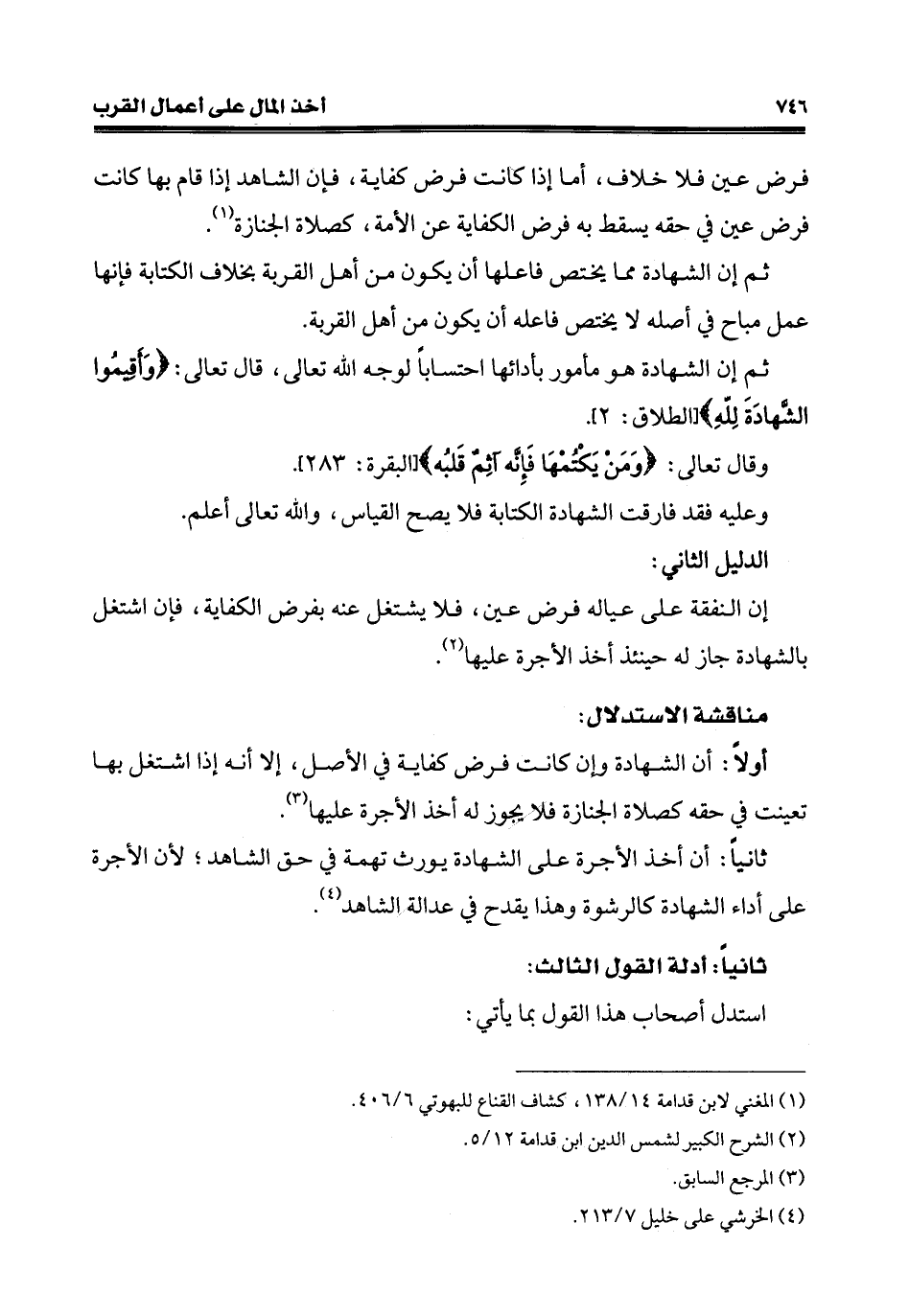 أوَّلًا: أن الشّهادة وإن كانت فرض كفاية في الأصل، إِلَّا أنّه إذا اشتغل بها تعينت في حقه كصلاة الجنازة فلا يجوز له أخذ الأجرة عليها (¬3).