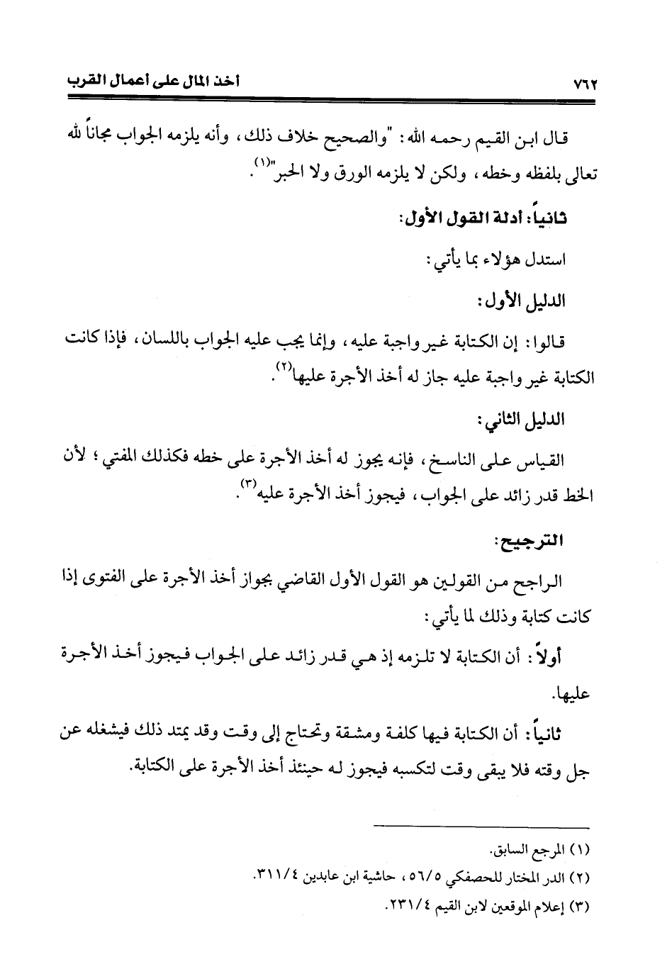 الراجح من القولين هو القول الأوّل القاضي بجواز أخذ الأجرة على الفتوى إذا كانت كتابة وذلك لما يأتي: