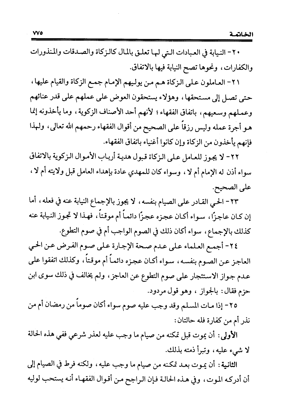 23 - الحي القادر على الصِّيام بنفسه، لا يجوز بالإجماع النيابة عنه في فعله، أمّا إنَّ كان عاجزًا، سواء أكان عجزه عجزًا دائمًا أم موقتًا، فهذا لا تجوز النيابة عنه كذلك بالإجماع، سواء أكان ذلك في الصوم الواجب أم في صوم التطوع.