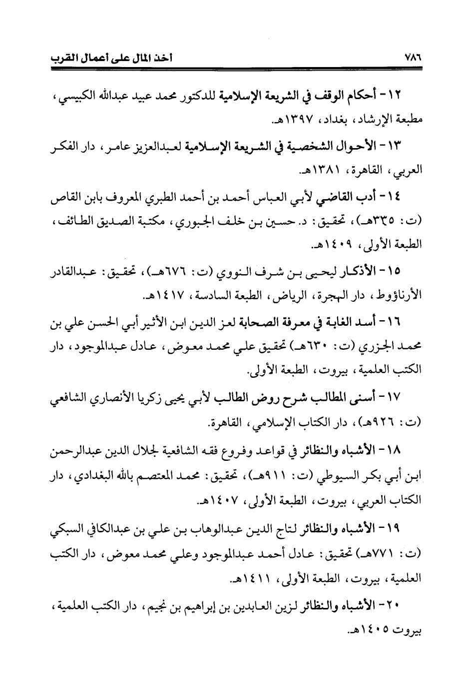 20 - الأشباه والنظائر لزين العابدين بن إبراهيم بن نجيم، دار الكتب العلمية، بيروت 1405 هـ.