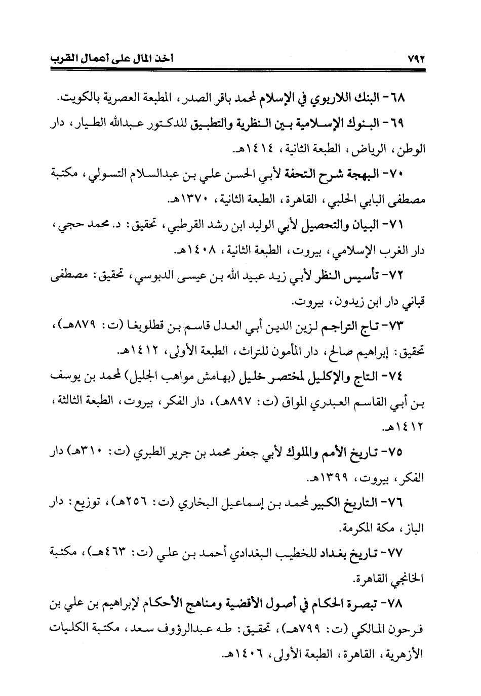 69 - البنوك الإِسلامية بين النظرية والتطبيق للدكتور عبد الله الطيار، دار الوطن، الرياض، الطبعة الثّانية، 1414 هـ
