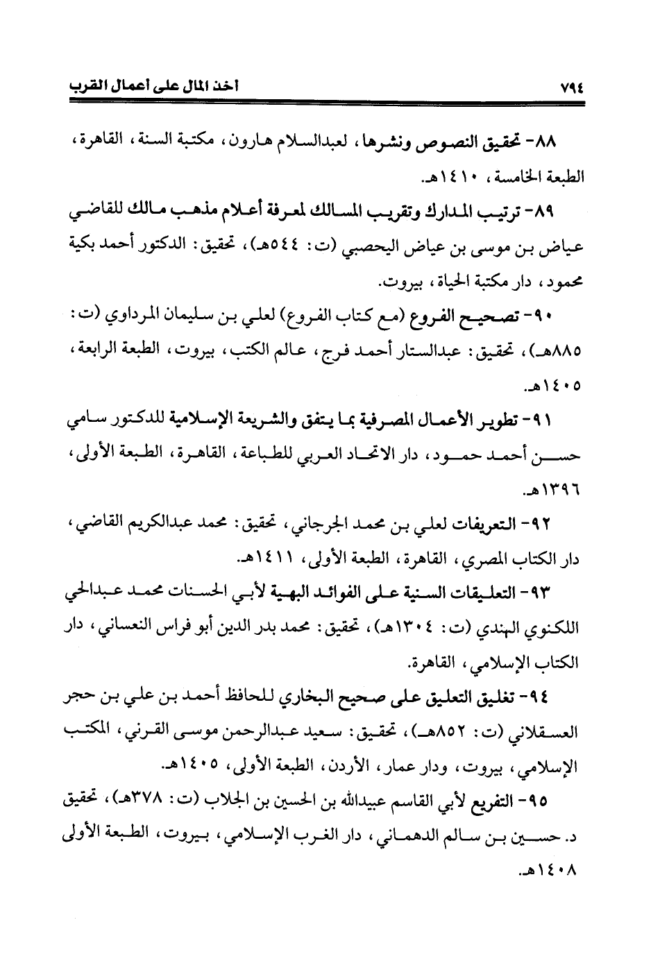 88 - تحقيق النصوص ونشرها, لعبد السّلام هارون، مكتبة السُّنَّة، القاهرة، الطبعة الخامسة، 1410 هـ