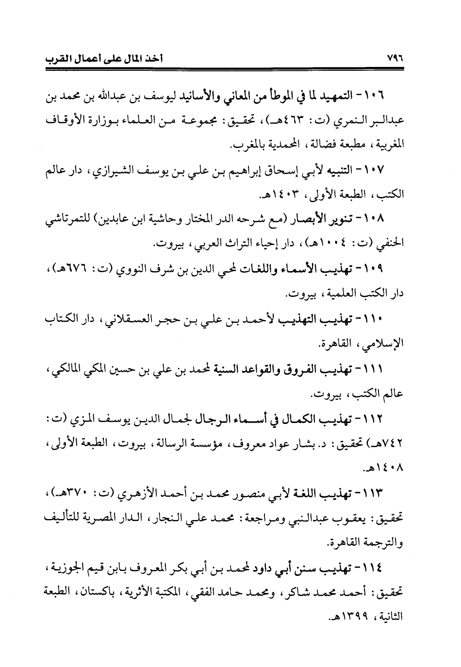 107 - التنبيه لأبي إسحاق إبراهيم بن علي بن يوسف الشيرازي، دار عالم الكتب، الطبعة الأولى، 1403 هـ