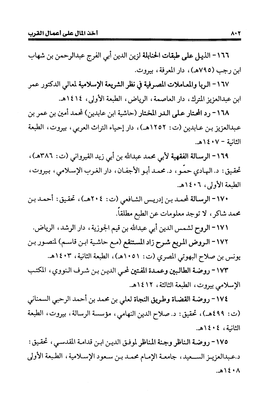 169 - الرسالة الفقهية لأبي محمَّد عبد الله بن أبي زيد القيرواني (ت: 386 هـ)، تحقيق: د. الهادي حمّو، د. محمَّد أبو الأجفان، دار الغرب الإِسلامي، بيروت، الطبعة الأولى، 1406 هـ.