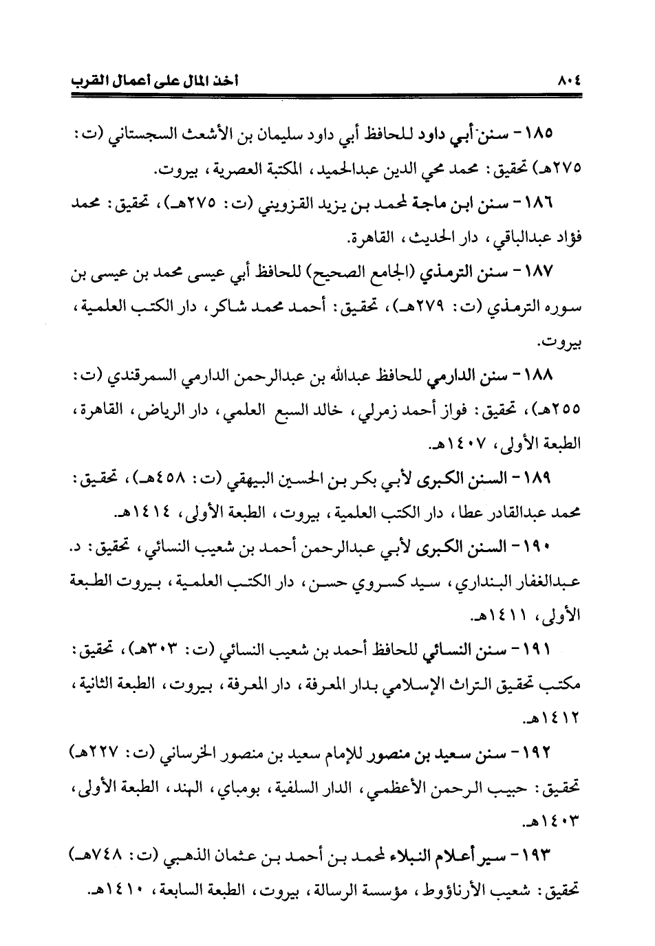 185 - سنن- أبي داود للحافظ أبي داود سليمان بن الأشعث السجستاني (ت: 275 هـ) تحقيق: محمَّد محيي الدِّين عبد الحميد، المكتبة العصرية، بيروت.