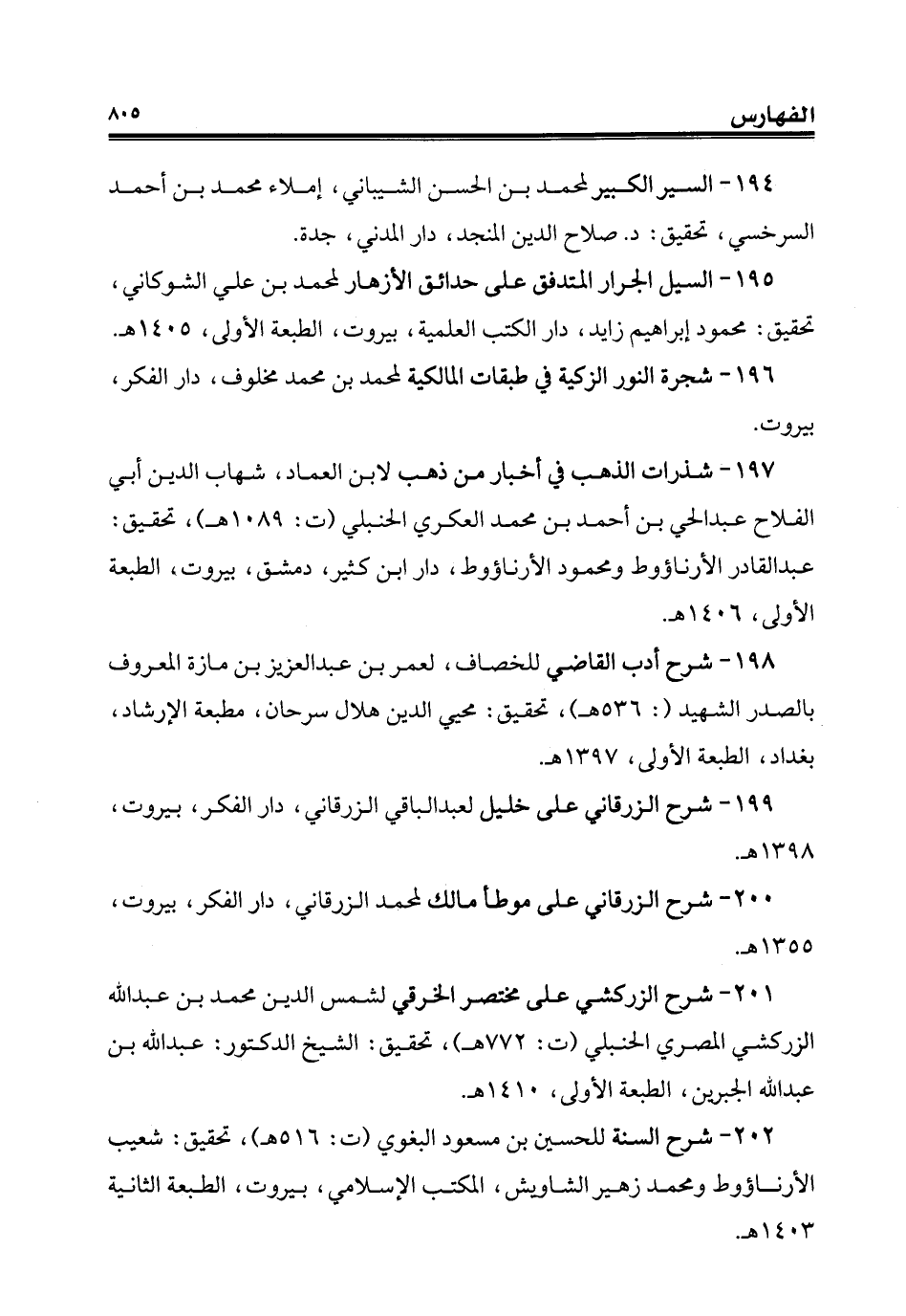 195 - السيل الجرار المتدفق على حدائق الأزهار لمحمد بن علي الشوكاني، تحقيق: محمود إبراهيم زايد، دار الكتب العلمية، بيروت، الطبعة الأولى، 1405 هـ.