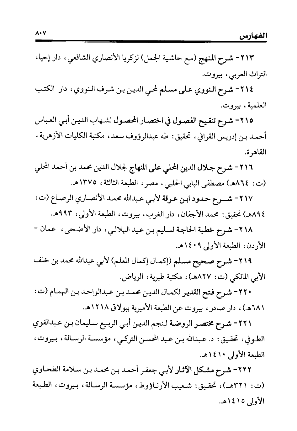 216 - شرح جلال الدِّين المحلي على المنهاج لجلال الدِّين محمَّد بن أحمد المحلي (ت: 864 هـ) مصطفى البابي الحلبي، مصر، الطبعة الثّالثة، 1375 هـ.
