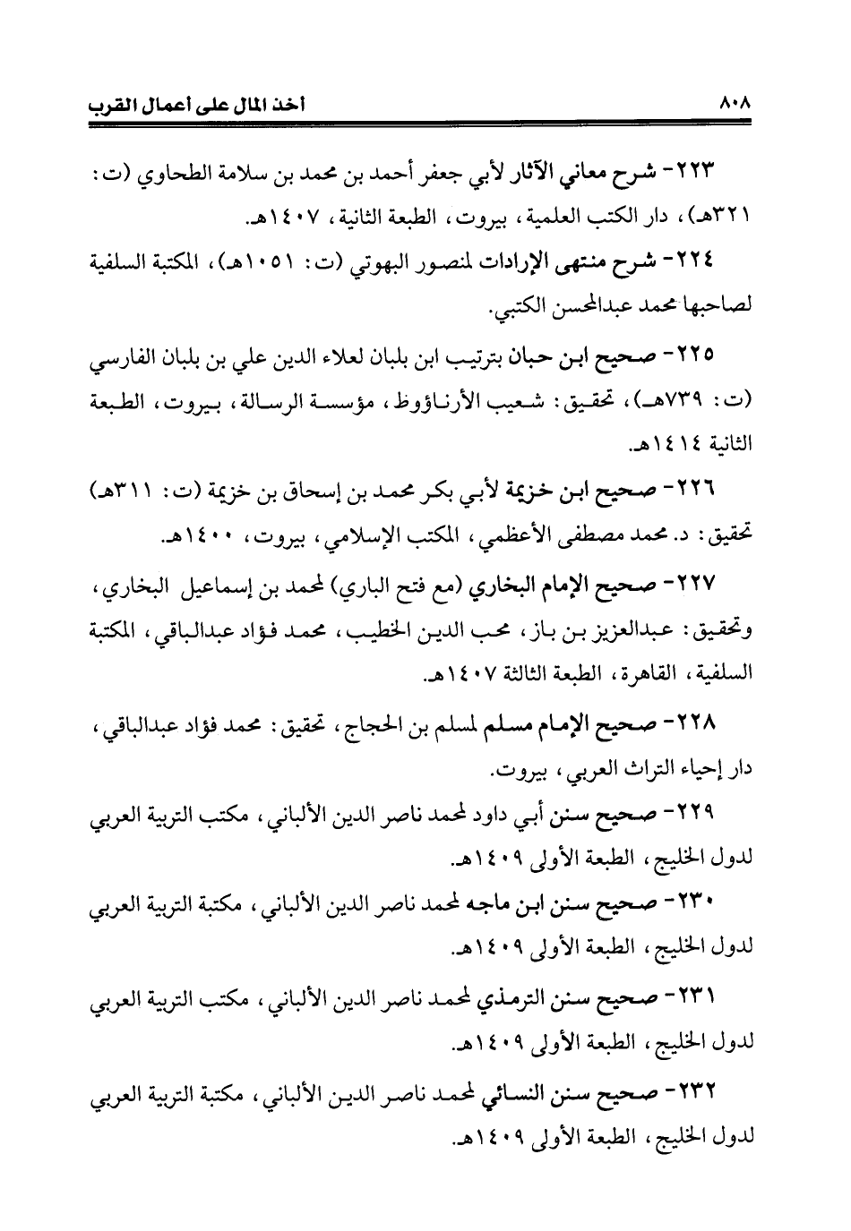 226 - صحيح ابن خزيمة لأبي بكر محمَّد بن إسحاق بن خزيمة (ت: 311 هـ) تحقيق: د. محمَّد مصطفى الأعظمي، المكتب الإِسلامي، بيروت، 1400 هـ.