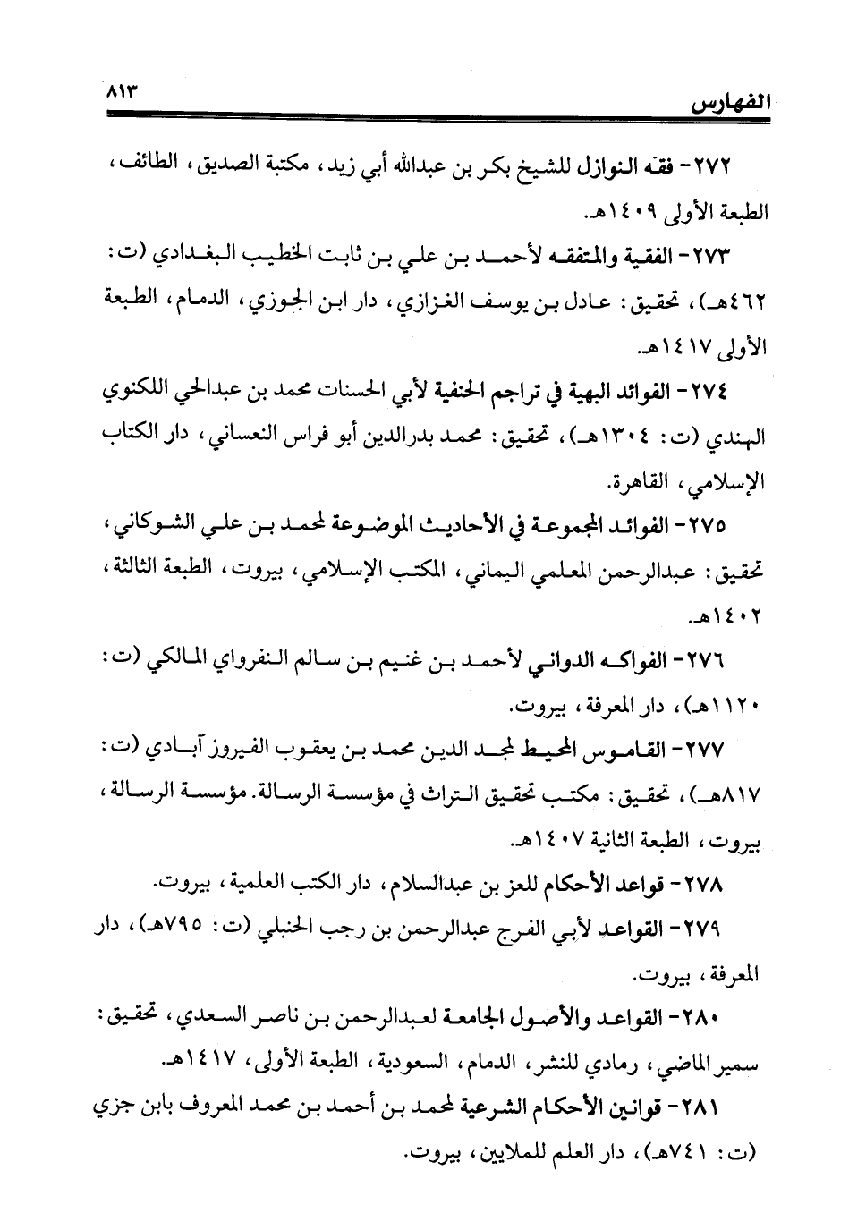 279 - القواعد لأبي الفرج عبد الرّحمن بن رجب الحنبلي (ت: 795 هـ)، دار المعرفة، بيروت.