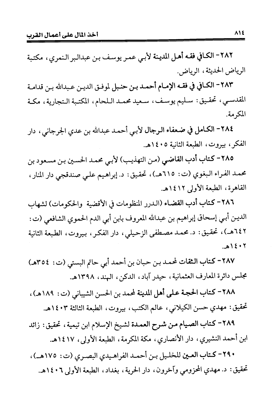283 - الكافي في فقه الإمام أحمد بن حنبل لموفق الدِّين عبد الله بن قدامة المقدسي، تحقيق: سليم يوسف، سعيد محمَّد اللحام، المكتبة التجارية، مكّة المكرمة.