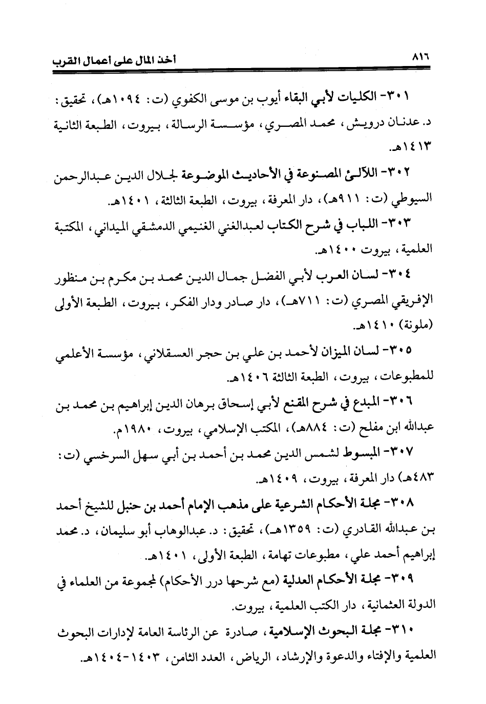308 - مجلة الأحكام الشرعية على مذهب الإمام أحمد بن حنبل للشيخ أحمد بن عبد الله القادري (ت: 1359 هـ)، تحقيق: د. عبد الوهّاب أبو سليمان، د. محمَّد إبراهيم أحمد علي، مطبوعات تهامة، الطبعة الأولى، 1401 هـ.