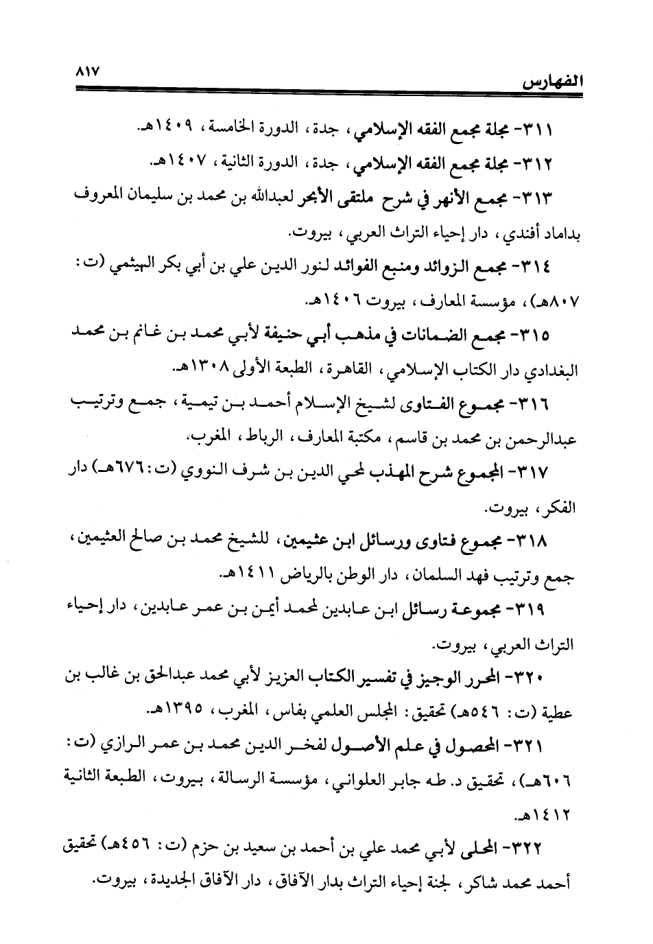 317 - المجموع شرح المهذب لمحي الدِّين بن شرف النووي (ت: 676 هـ) دار الفكر، بيروت.