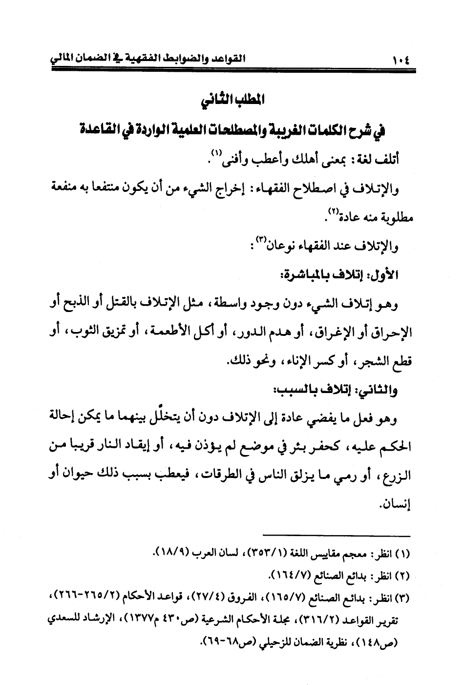 (¬٣) انظر: بدائع الصنائع (٧/ ١٦٥)، الفروق (٤/ ٢٧)، قواعد الأحكام (٢/ ٢٦٥ - ٢٦٦)، تقرير القواعد (٢/ ٣١٦)، مجلة الأحكام الشرعية (ص ٤٣٠ م ١٣٧٧)، الإرشاد للسعدي (ص ١٤٨)، نظرية الضمان للزحيلي (ص ٦٨ - ٦٩).