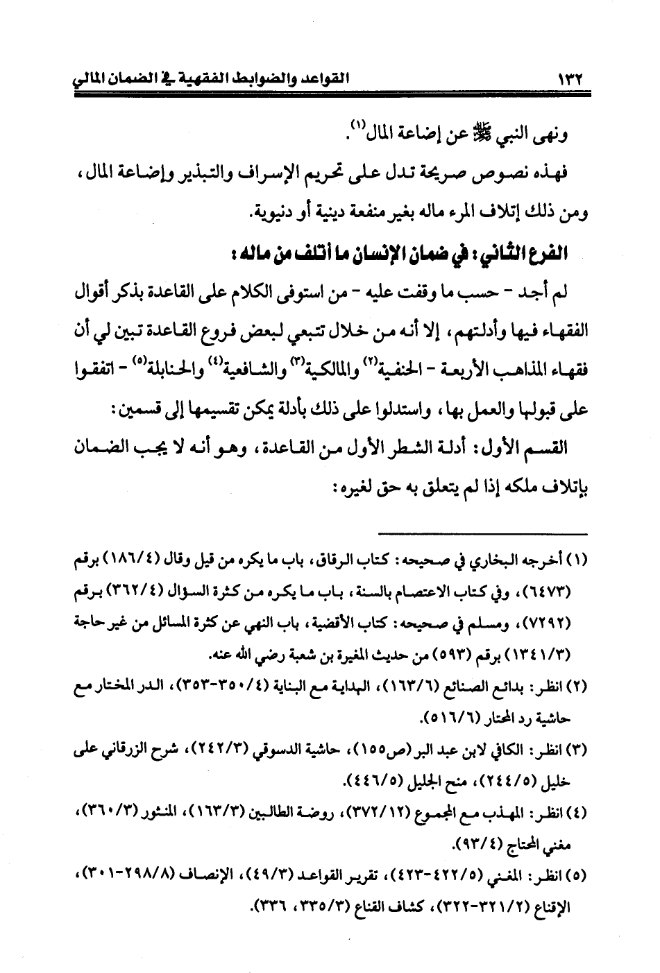 الفرع الثاني: في ضمان الإنسان ما أتلف من ماله: