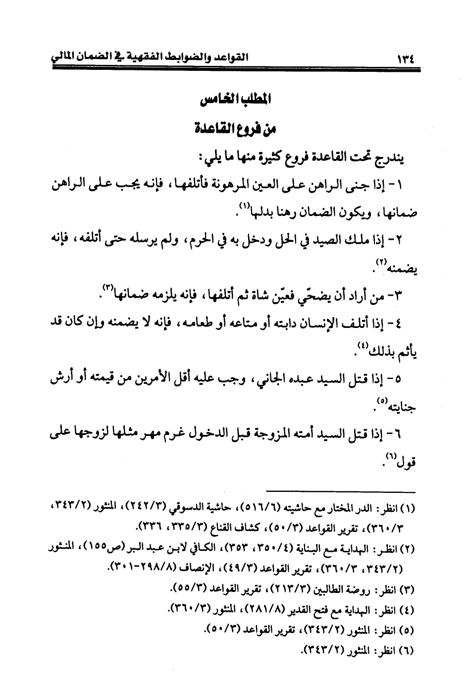 (¬١) انظر: الدر المختار مع حاشيته (٦/ ٥١٦)، حاشية الدسوقي (٣/ ٢٤٢)، المنثور (٢/ ٣٤٣، ٣/ ٣٦٠)، تقرير القواعد (٣/ ٥٠)، كشاف القناع (٣/ ٣٣٥، ٣٣٦).