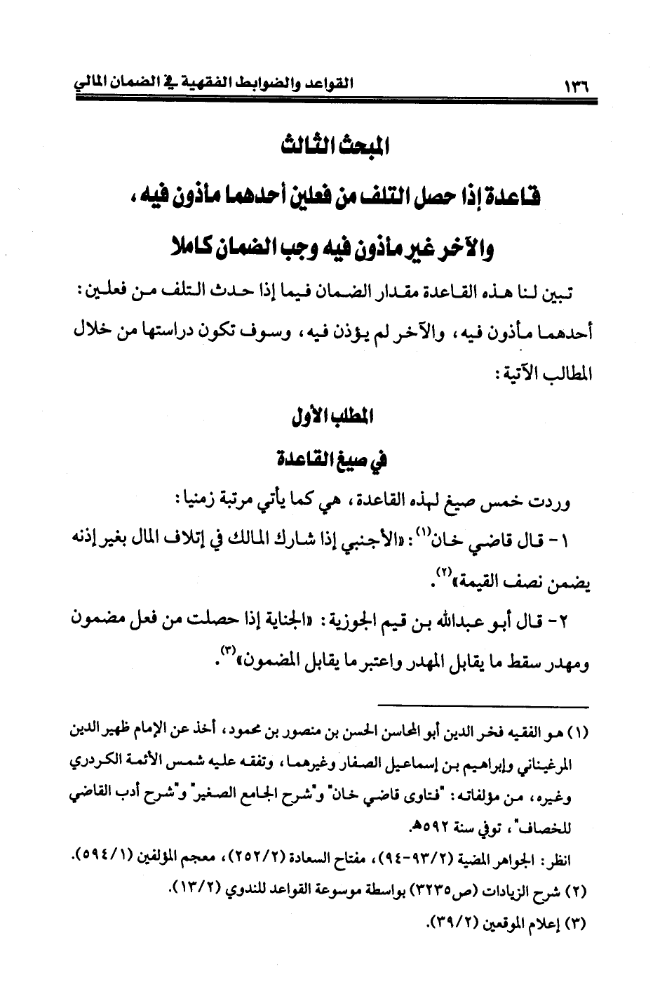 تبين لنا هذه القاعدة مقدار الضمان فيما إذا حدث التلف من فعلين: أحدهما مأذون فيه، والآخر لم يؤذن فيه، وسوف تكون دراستها من خلال المطالب الآتية: