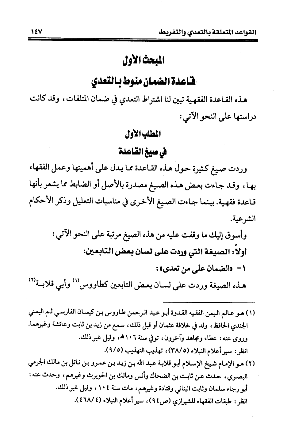 هذه القاعدة الفقهية تبين لنا اشتراط التعدي في ضمان المتلفات، وقد كانت دراستها على النحو الآتي: