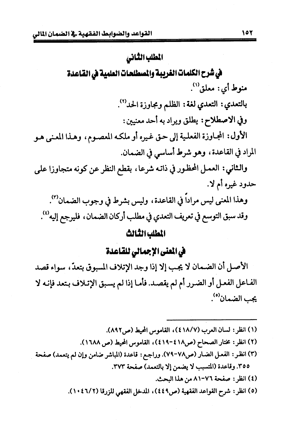 (¬٣) انظر: الفعل الضار (ص ٧٨ - ٧٩). وراجع: قاعدة (المباشر ضامن وإن لم يتعمد) صفحة ٣٥٥. وقاعدة (المتسبب لا يضمن إلا بالتعمد) صفحة ٣٧٣.