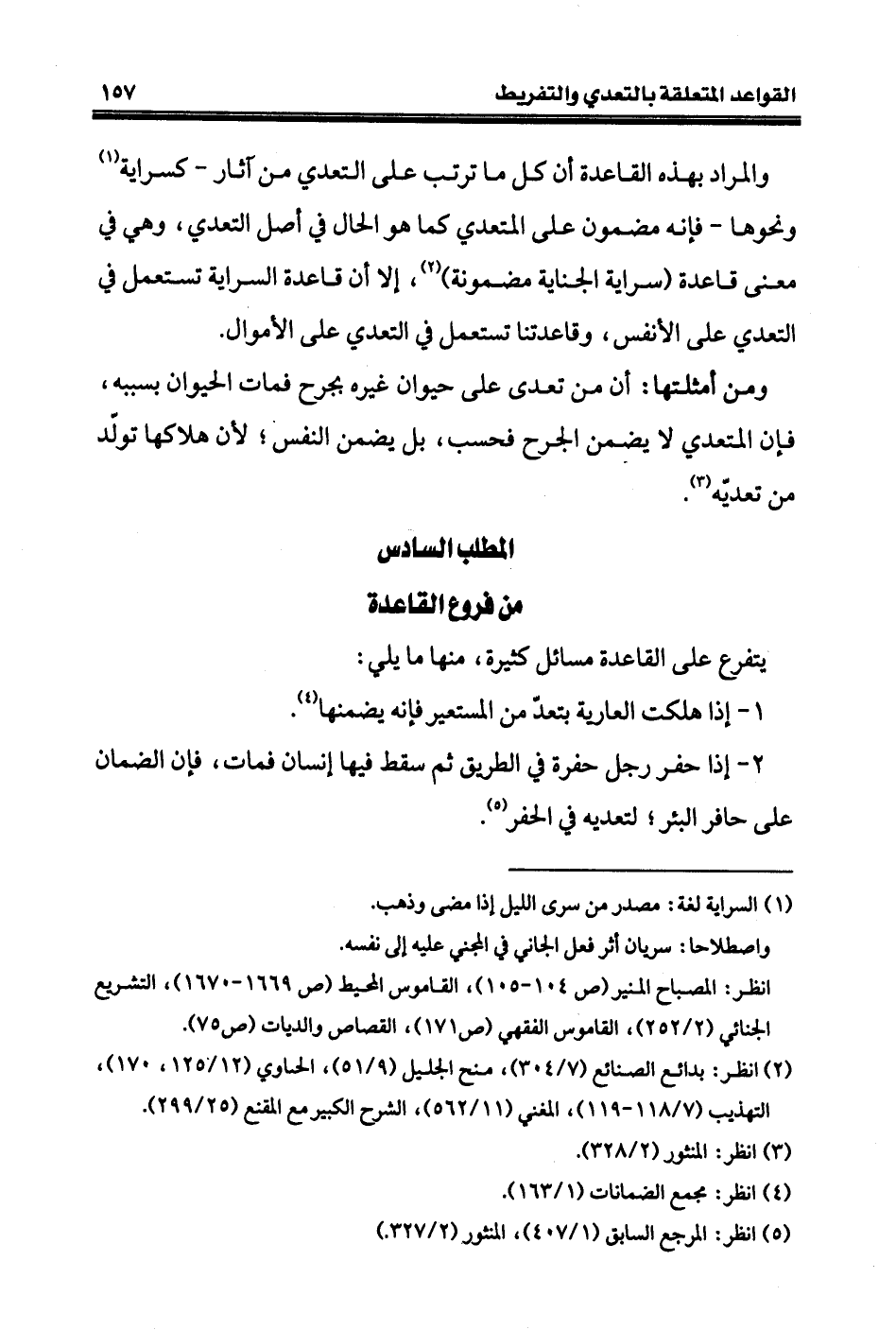 ومن أمثلتها: أن من تعدى على حيوان غيره بجرح فمات الحيوان بسببه، فإن المتعدي لا يضمن الجرح فحسب، بل يضمن النفس؛ لأن هلاكها تولّد من تعديّه (¬٣).