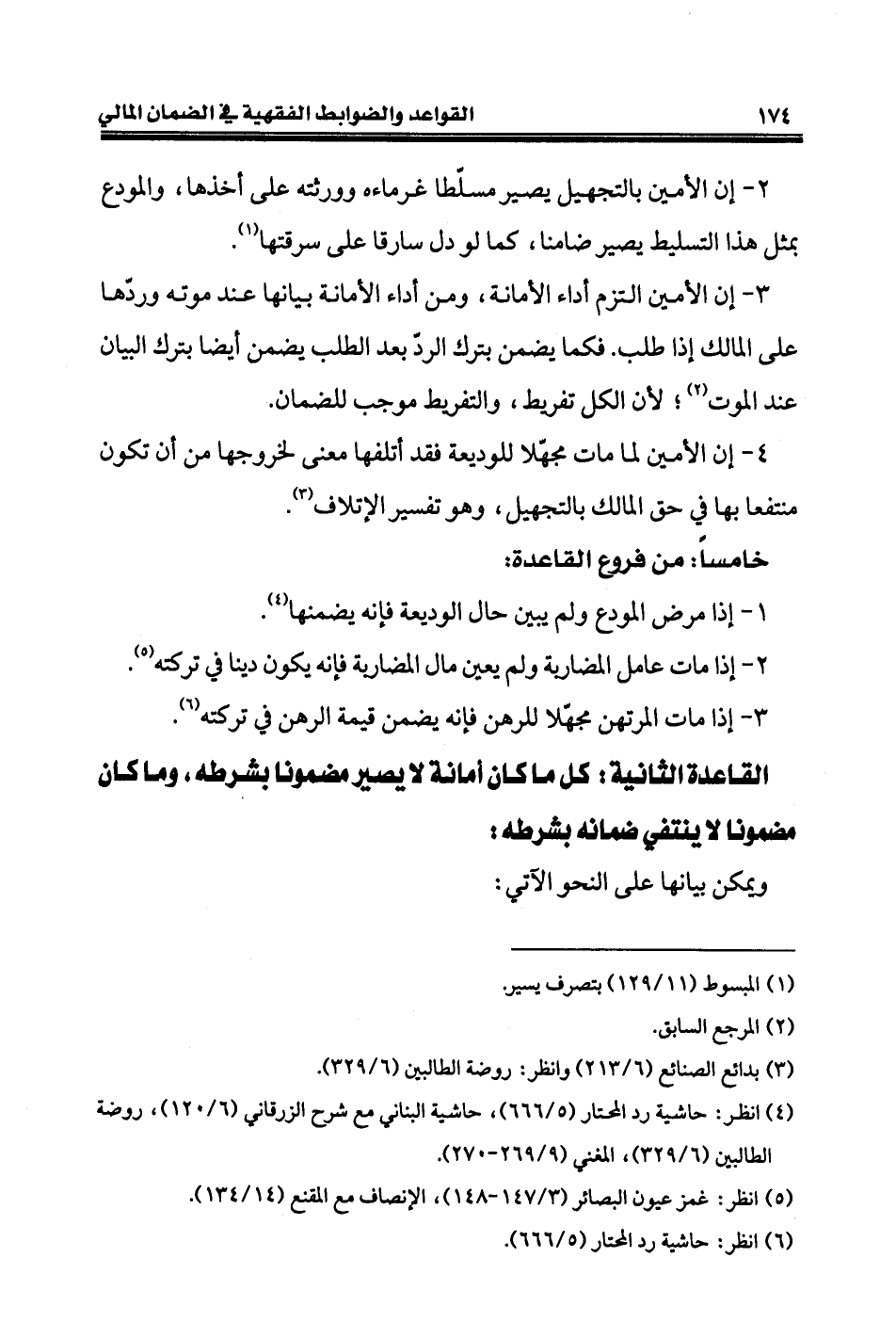 القاعدة الثانية: كل ما كان أمانة لا يصير مضمونا بشرطه، وما كان مضمونا لا ينتفي ضمانه بشرطه: