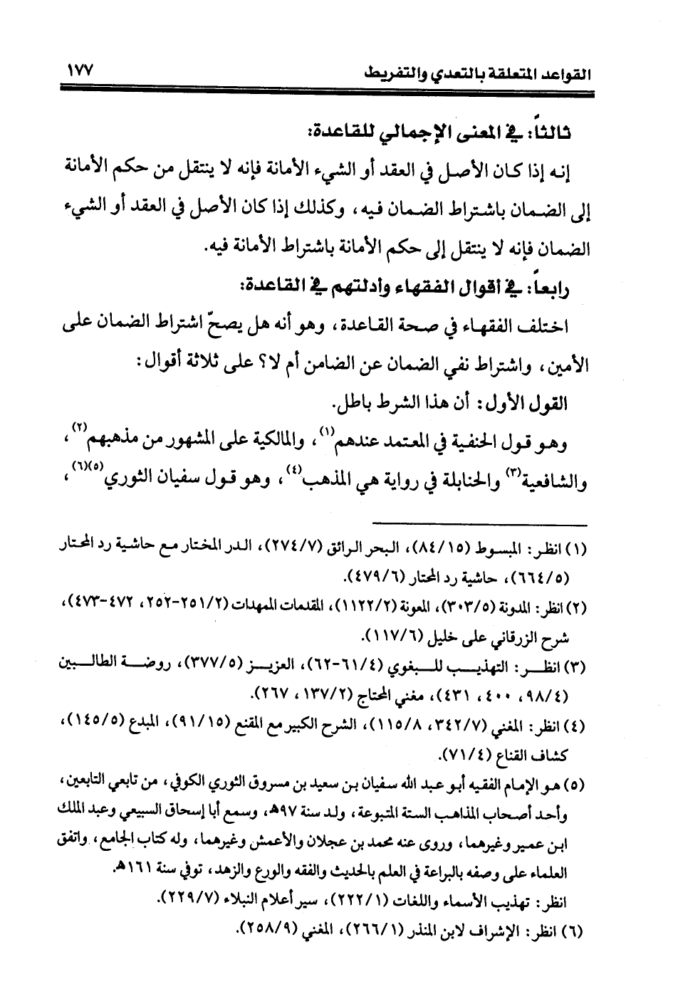 اختلف الفقهاء في صحة القاعدة، وهو أنه هل يصحّ اشتراط الضمان على الأمين، واشتراط نفي الضمان عن الضامن أم لا؟ على ثلاثة أقوال: