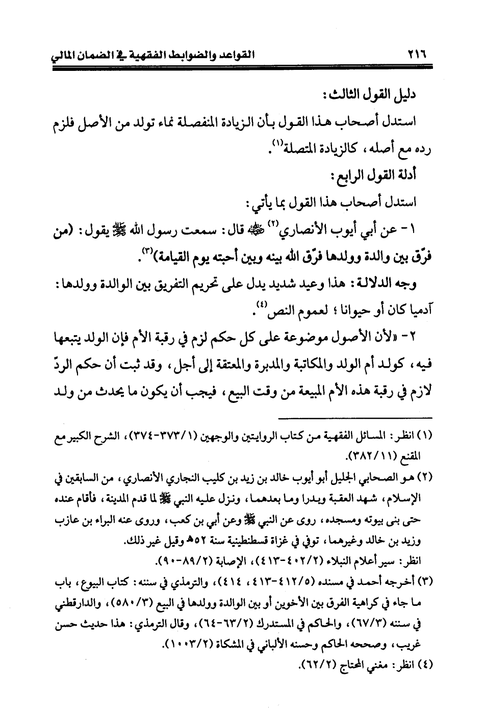 ٢ - «لأن الأصول موضوعة على كل حكم لزم في رقبة الأم فإن الولد يتبعها فيه، كولد أم الولد والمكاتبة والمدبرة والمعتقة إلى أجل، وقد ثبت أن حكم الردّ لازم في رقبة هذه الأم المبيعة من وقت البيع، فيجب أن يكون ما يحدث من ولد