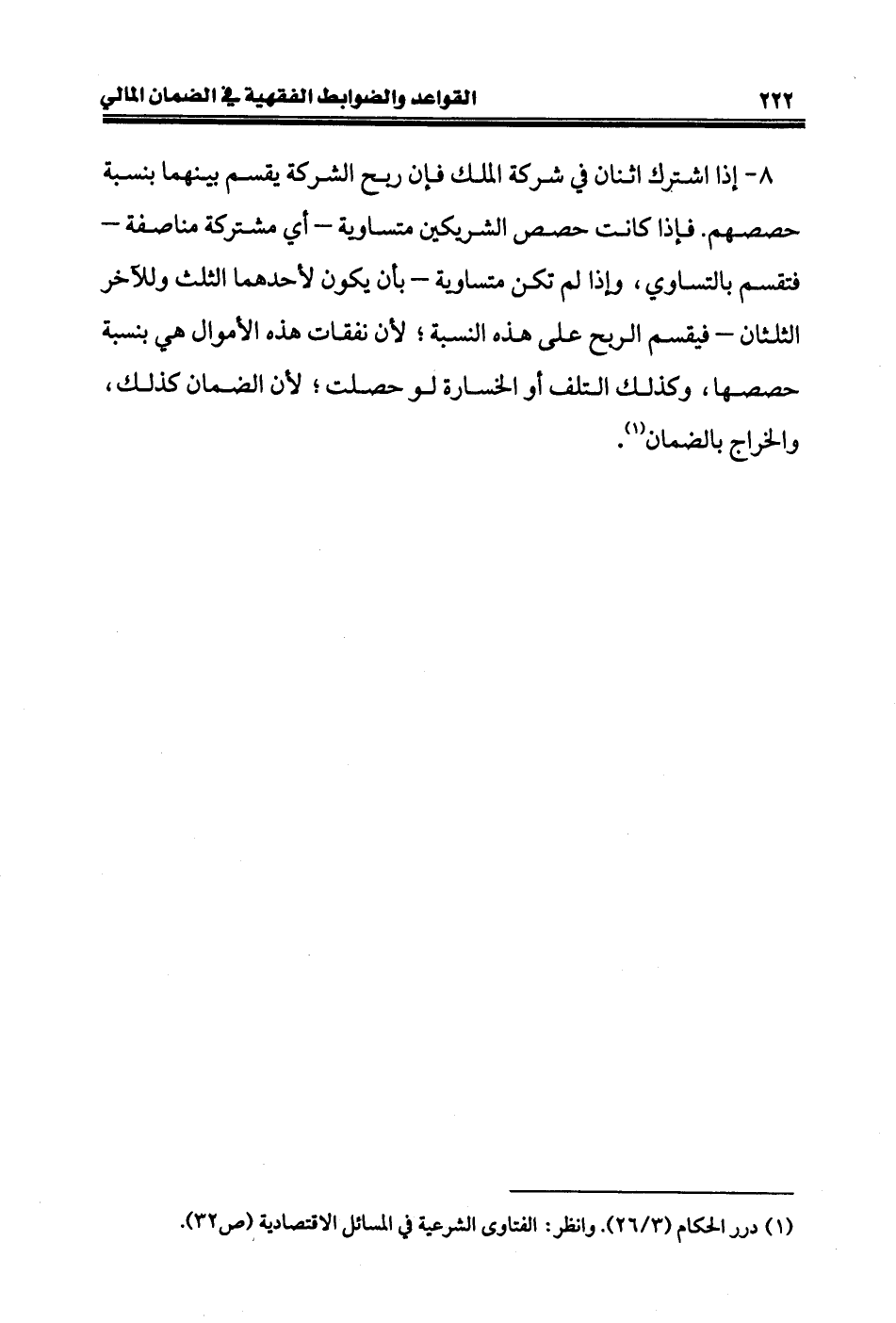 (¬١) درر الحكام (٣/ ٢٦). وانظر: الفتاوى الشرعية في المسائل الاقتصادية (ص ٣٢).
