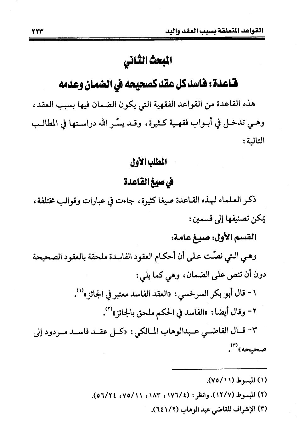 ٣ - قال القاضي عبدالوهاب المالكي: «كل عقد فاسد مردود إلى صحيحه» (¬٣).