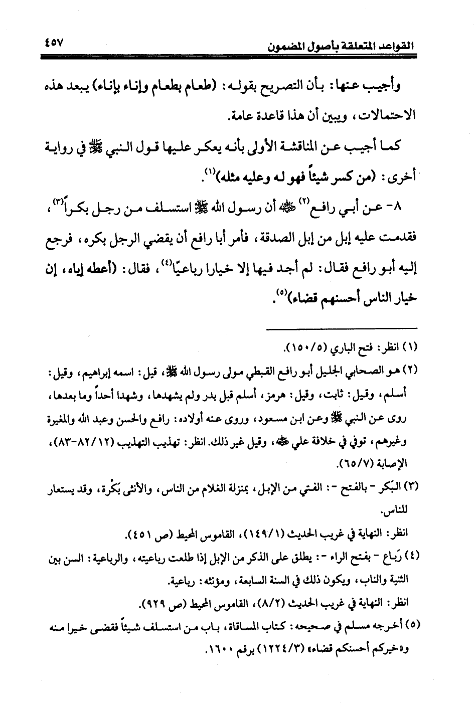 (¬٥) أخرجه مسلم في صحيحه: كتاب المساقاة، باب من استسلف شيئاً فقضى خيرا منه و «خيركم أحسنكم قضاء» (٣/ ١٢٢٤) برقم ١٦٠٠.