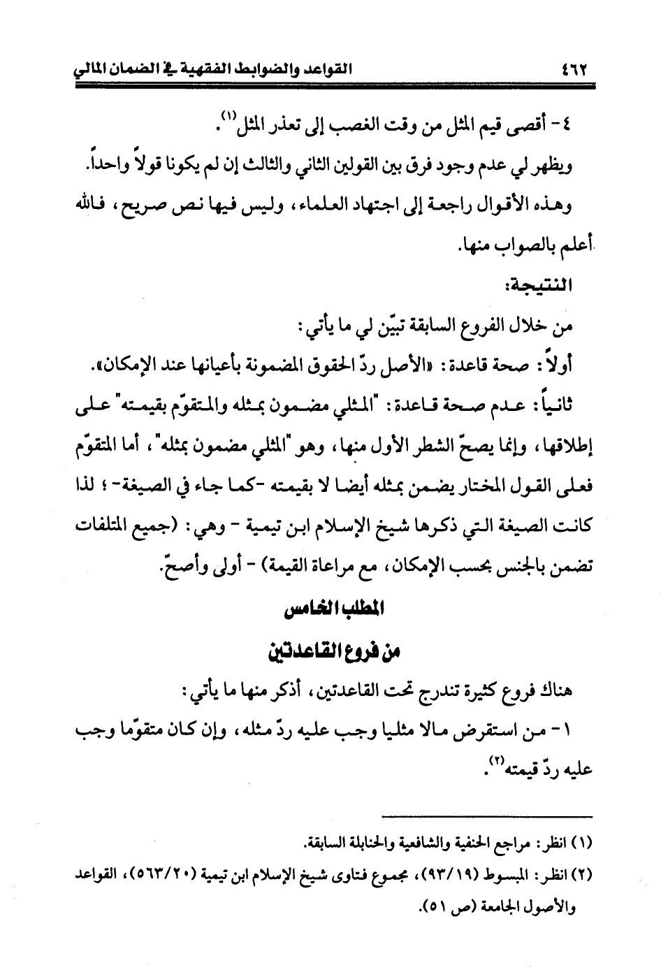 (¬٢) انظر: المبسوط (١٩/ ٩٣)، مجموع فتاوى شيخ الإسلام ابن تيمية (٢٠/ ٥٦٣)، القواعد والأصول الجامعة (ص ٥١).