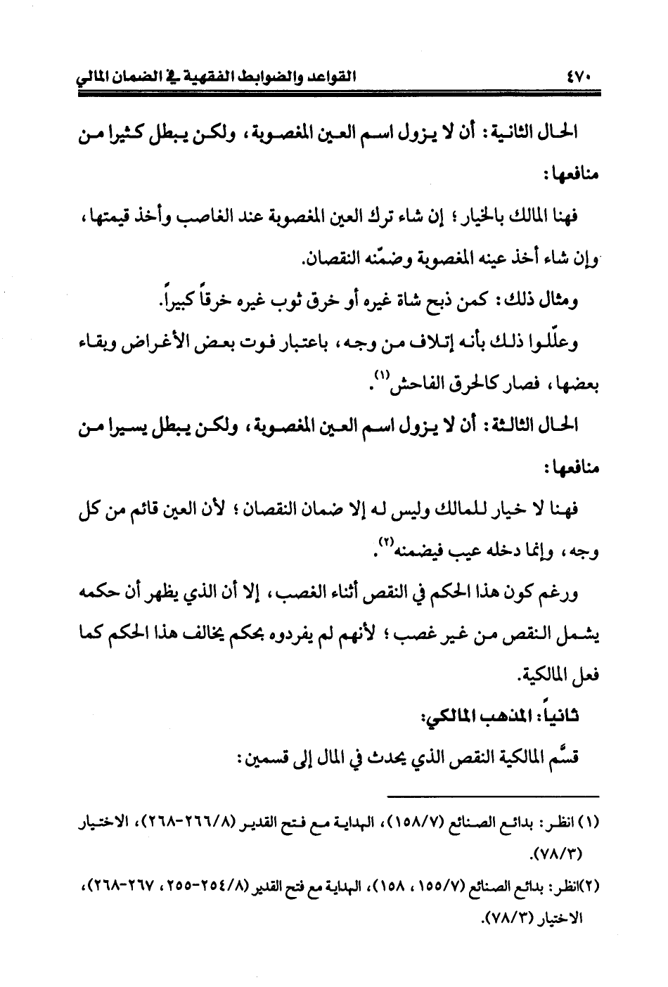 قسَّم المالكية النقص الذي يحدث في المال إلى قسمين: