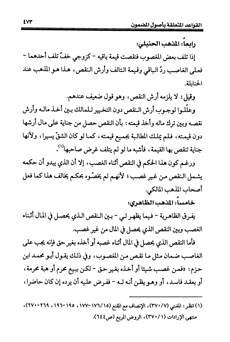 يفرق الظاهرية - فيما يظهر لي - بين النقص الذي يحصل في المال أثناء الغصب وبين النقص الذي يحصل في المال من غير غصب.