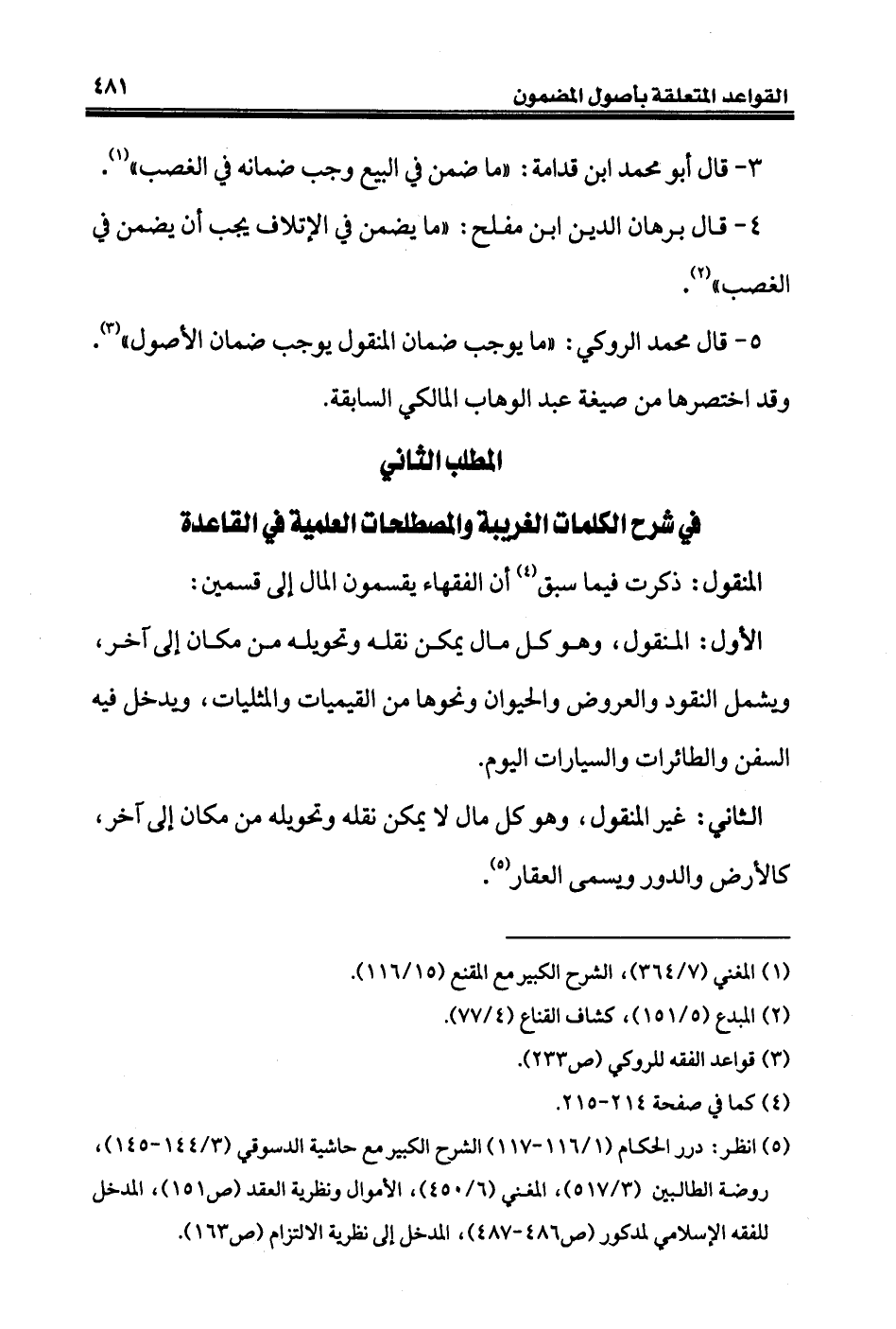 المنقول: ذكرت فيما سبق (¬٤) أن الفقهاء يقسمون المال إلى قسمين: